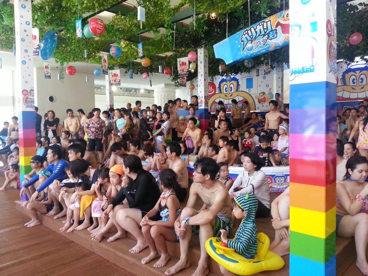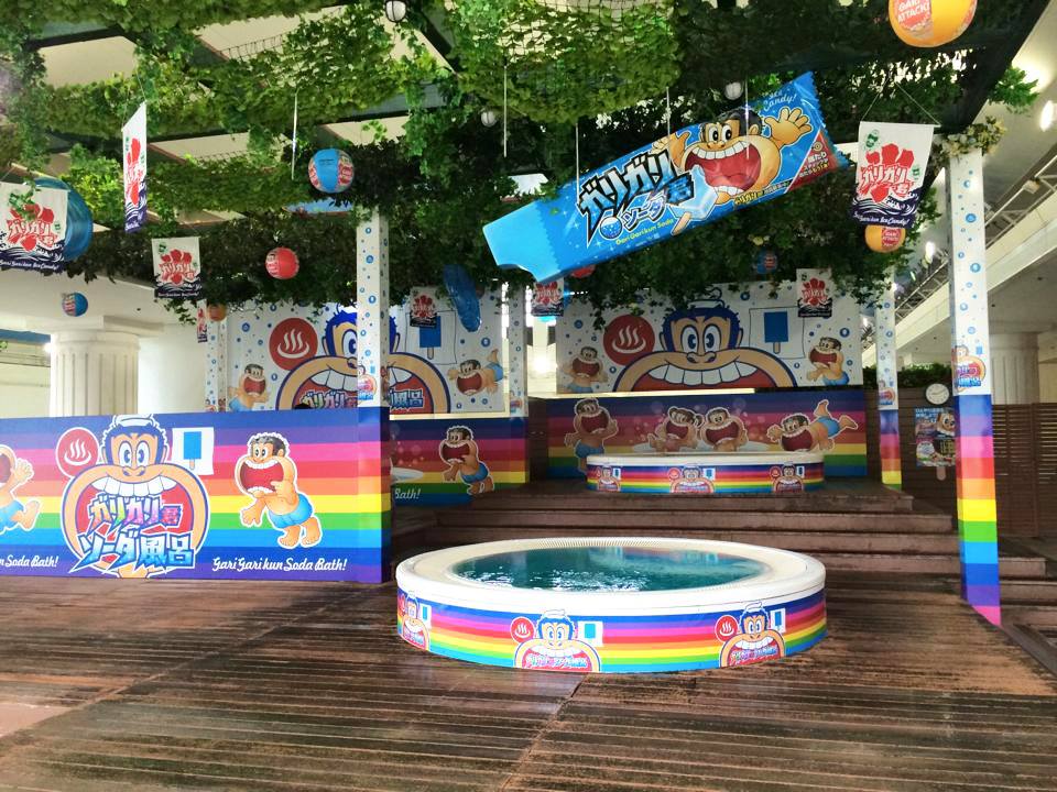 No verão de 2015, a novidade é a área das piscinas frias com “sabor” soda de Gari Gari Kun, picolé popular no Japão(garigarikun-garigariku-garigarikuuuuun>> veja o vídeo).