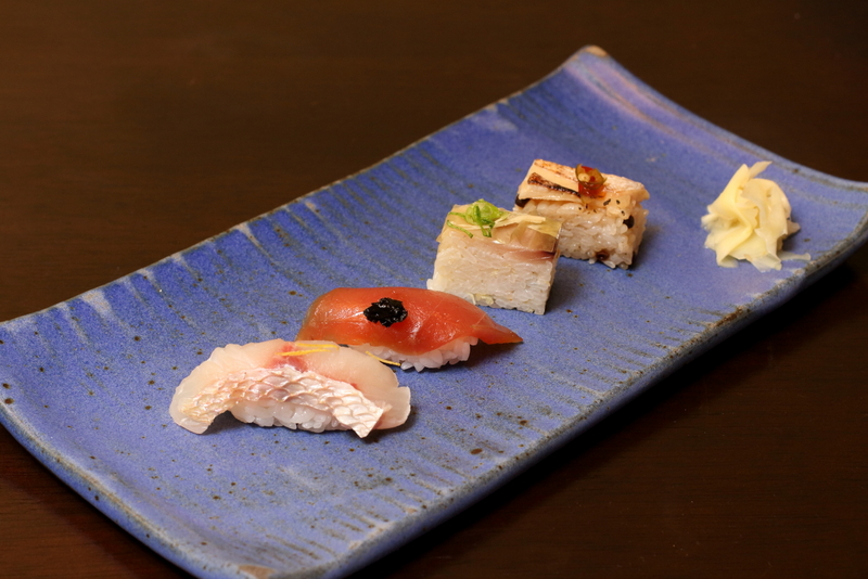 Já a combinação de karaagues de manjuba, lula, siri mole e renkon foi acompanhada de molho ponzu. A fritura abriu o apetite para a sequência de sushis e sashimis que permitiu que os convidados brincassem com as opções de shoyus servidos à mesa. Destes, o shoyu Guen-en, com 40% menos sódio, proporcionou um balanço para ressaltar o sabor das preparações combinado à doçura do wasabi natural.