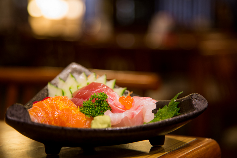 - Sashimi de salmão com raspas de limão siciliano, azeite trufado e flor de sal e garoupacom ovas de salmão