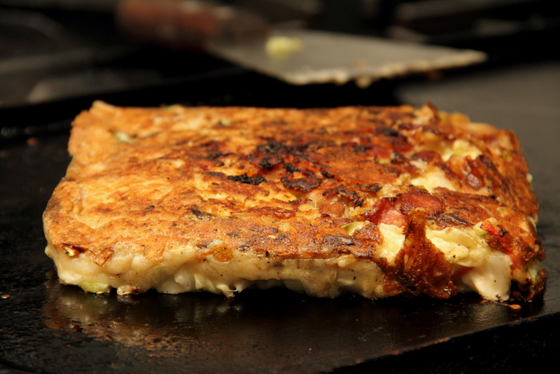 O okonomiyaki é um prato popular no Japão e pode ser encontrado no Brasil com o nome de “pizza” ou “panqueca japonesa”. A palavra em si significa “grelhado ao seu gosto”, por isso, permite inúmeras variações. A base da preparação é o repolho, que ganha liga com uma massa feita com farinha, ovos e água.
