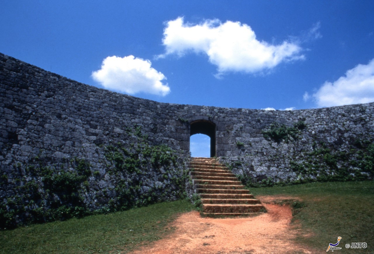 - As Ruínas do castelo Nakagusuku são as que mais preservam as construções originais dos castelos de Okinawa. Okinawa Convention & Visitors Bureau/JNTO