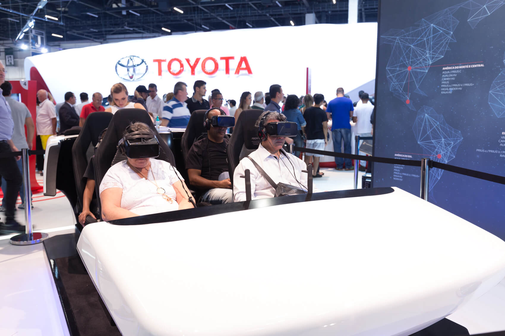 - Experiência de dirigir um carro com óculos de realidade virtual no estande da Toyota