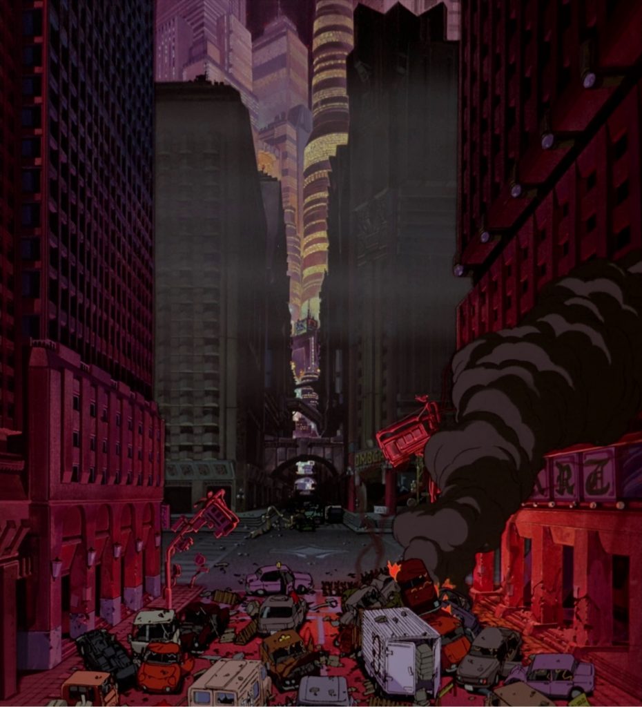Ambientado em 2019 (na versão americana do mangá, a história se passa em 2029), o filme mostra uma cidade caótica, destruída. No filme, Otomo, e o diretor de arte Toshiharu Mizutani, criaram a Neo-Tokyo tal qual você vê abaixo nas imagens. Aliás, criação e destruição é uma dupla recorrente na obra.
