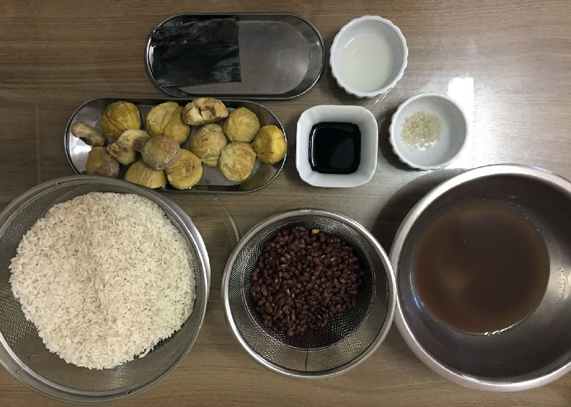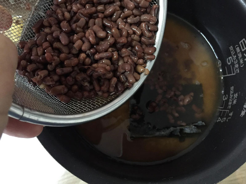 - Acrescente o azuki, a alga kombu e, por fim, as castanhas e ligue a panela elétrica*.