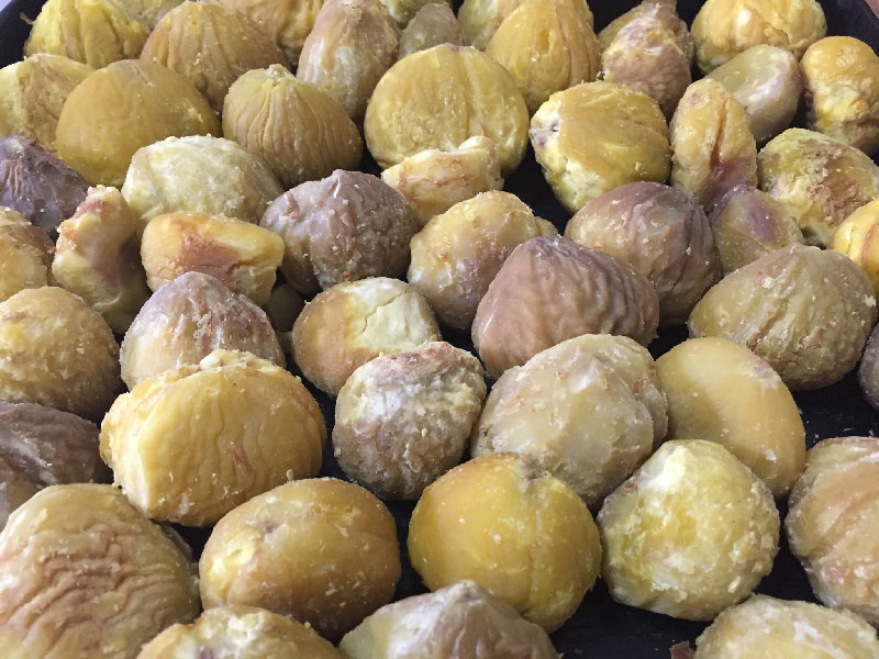 - Faça cortes de 1 cm na parte de cima das castanhas e cozinhe-as no vapor por 30 minutos. Isso ajudará na hora de descascá-las.