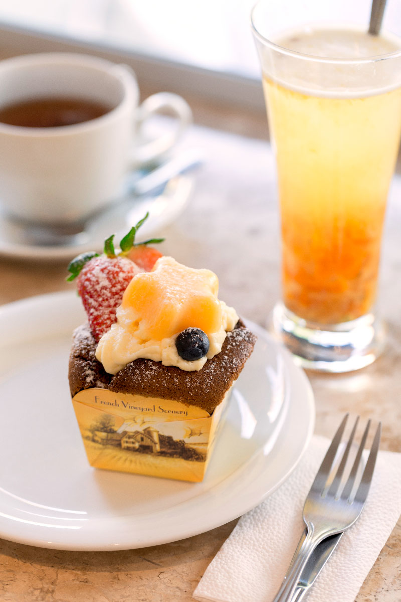 No quadro de bebidas, a seleção de chás inclui chá verde chinês (com folhas fermentadas e flores de jasmin), chá vermelho do Sri Lanka – Mackwoods, proveniente de uma plantação que tem mais de 100 anos de tradição – e chá de kinkan (na versão quente ou fria), feito na casa com pedaços da fruta em calda, gengibre, limão e um açúcar cristal.