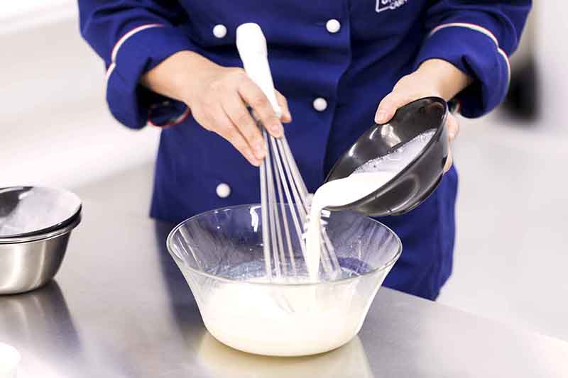 - Adicione os açúcares, leite em pó e a base semielaborada.