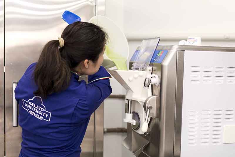 A produção do gelato requer o uso de uma máquina. Há modelos industriais e domésticos. “Existem dois tipos de máquinas domésticas. Uma que já vem com termostato consegue gelar o cilindro interno. Os modelos mais simples requerem que se deixe o cilindro gelando no freezer por 24 horas no mínimo”, explica a chef. Na máquina doméstica, o gelato fica pronto em cerca de 20 minutos; na industrial, em 6 minutos no máximo.