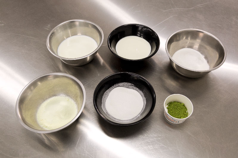 - Acrescente a saborização. Nesta receita, o matcha*.