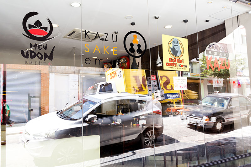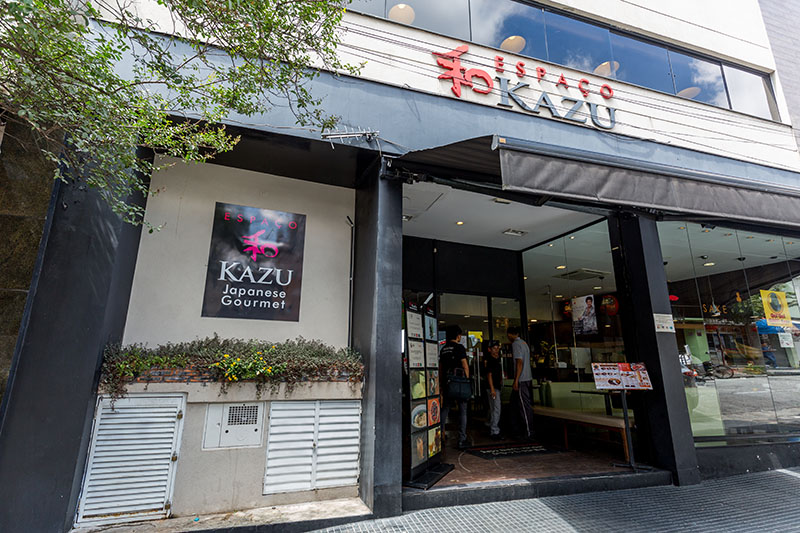 O Espaço Kazu concentra ambientes diversos num único endereço. No térreo tem o restaurante com opções de pratos quentes e frios da cozinha japonesa, tudo à la carte e um buffet de saladas. No primeiro andar, três empreendimentos dividem espaço. A cafeteria Kazu Cake atrai com doces leves da confeitaria oriental, enquanto que o Sake Emporium apresenta rótulos de bebidas japonesas e o Meu Udon oferece um cardápio especializado em macarrão udon, com massa artesanal preparada pelo chef Yoshio Mizumoto.