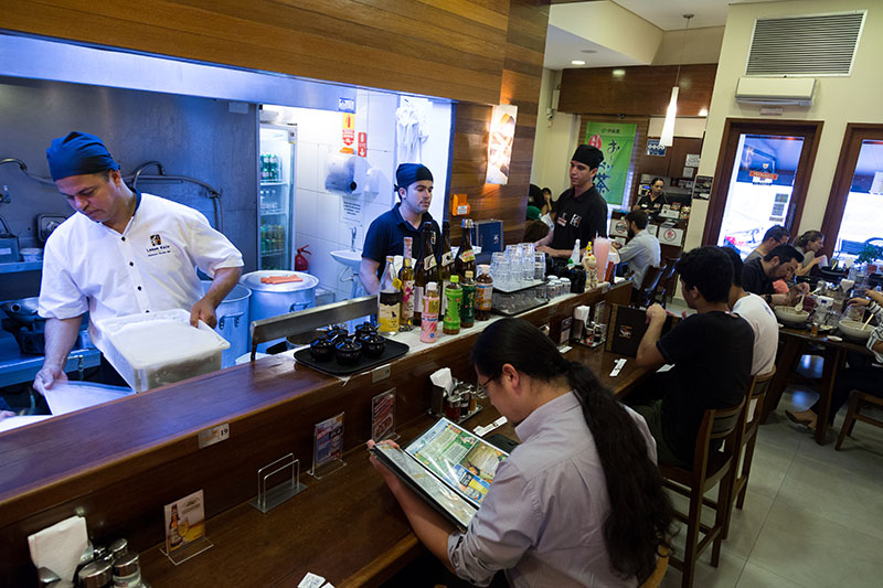 No restaurante Fuji, antigo Hissae, tem um pouco de cada coisa para agradar a todos. Tem teppan, teishoku, lámen, udon, temaki. Segundo o chef Luciano Ishizaka, que está há oito anos no Fuji, o público varia bastante entre turistas, estudantes e trabalhadores do bairro. “Antigamente os estudantes comiam coxinha no intervalo; hoje é temaki”, brinca.