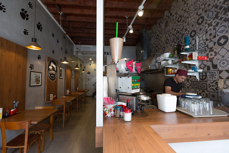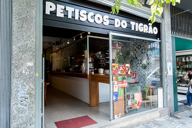 Com uma cozinha que também serve como vitrine logo na entrada, o Petiscos do Tigrão é uma casa especializada em guabao, um tipo de sanduíche taiwanês feito com pão assado no vapor e recheado com carne de porco, folha de mostarda e amendoim. No cardápio tem outros recheios como frango, tofu defumado e peixe e o pão pode ser assado ou frito. Além do guabao, tem outras opções de pratos como os ensopados de macarrão personalizáveis (variações de tipos de macarrão, de acompanhamentos e caldos), sopas (wun tun e bolinho de carne), e pratos executivos.