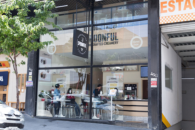 Com um ambiente descontraído, Spoonful Creamery é uma sorveteria diferente. Em vez de sorvete, o cardápio tem sabores de raspadinha de neve, também chamada de “snow fluff”. De origem taiwanesa, essa raspadinha faz sucesso nos mercados asiáticos e americano, e é diferente da raspadinha de gelo, porque é feita com finas camadas tiradas de um bloco de gelo feito com leite. “A raspadinha de neve é uma sobremesa refrescante e cremosa ao mesmo tempo”, descreve Willian Hwu, . À raspadinha podem ser adicionados sabores e toppings como frutas e gelatinas. No Spoonful tem 11 opções de sabores e além da raspadinha tem variedades de chás com pobá e pérolas de frutas, cafés e outras sobremesas como cheesecake e waffles.