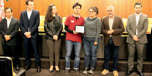 - Henrique Minatogawa, da equipe Hashitag recebe a menção honrosa (Foto: André Moura/CMSP) André Moura/CMSP