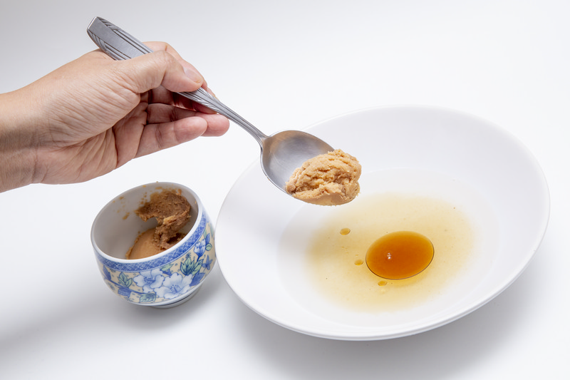 - Misture o missô, o vinagre, saquê, água, açúcar, óleo de gergelim e o gengibre ralado até que fique homogêneo.