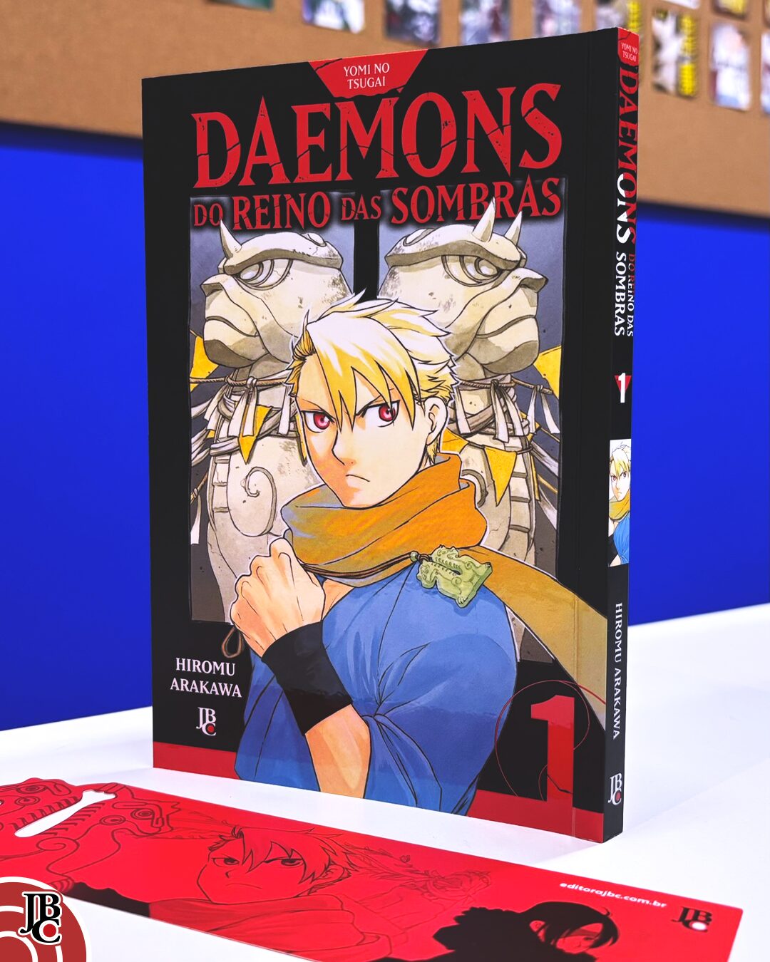 Mas um dos maiores destaques na lona de frente do estande temos a nova obra de Hiromu Arakawa, Yomi no Tsugai, cuja versão brasileira ficou DAEMONS DO REINO DAS SOMBRAS.