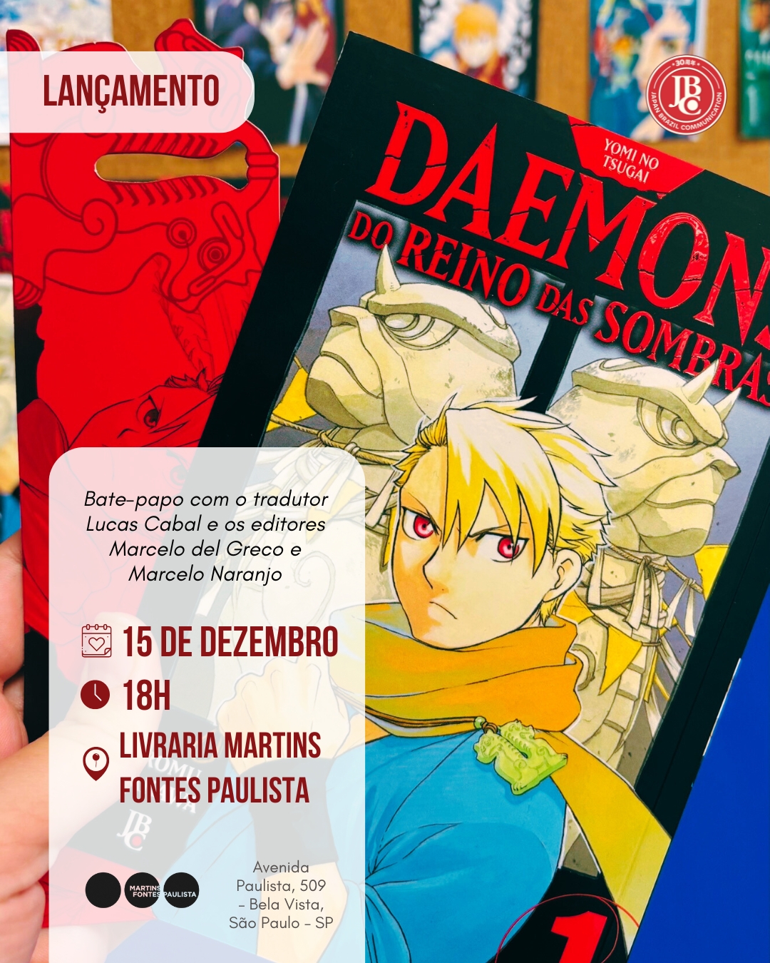 E para celebrar a chegada do mangá, a Editora JBC programou com a Livraria Martins Fontes um evento aberto ao público para falar sobre a obra, as expectativas para o anime e as curiosidades da produção.